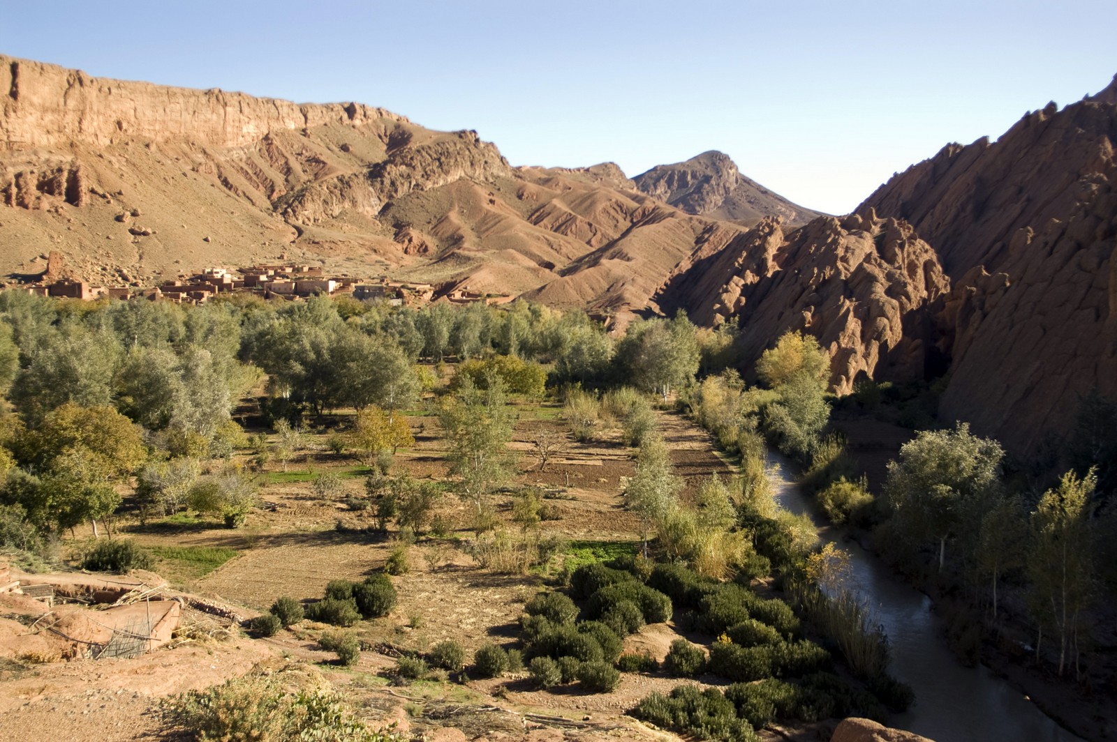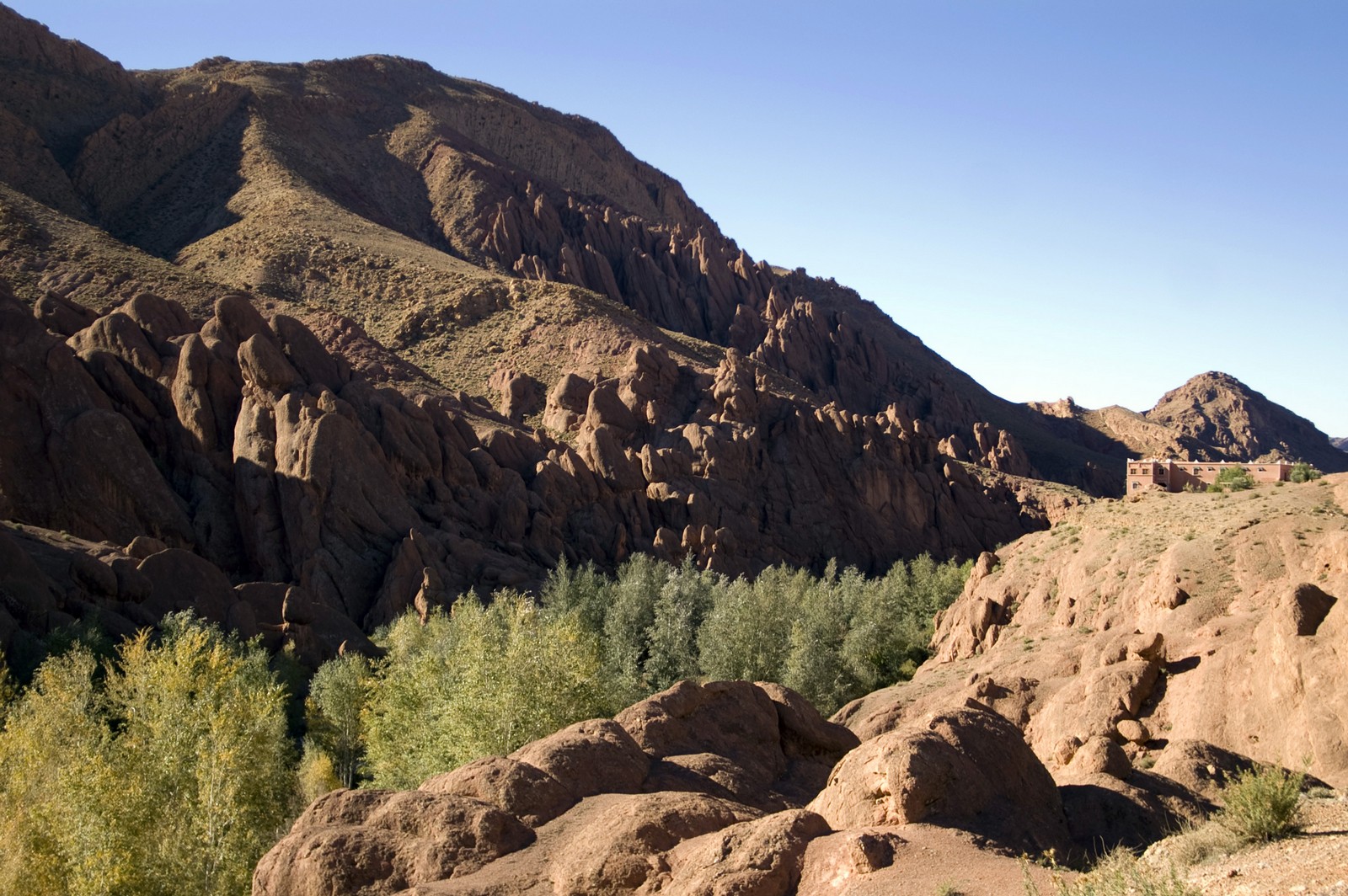 4ème jour - BOUMALNE/TINEGHIR : Départ pour le village d'Ait Oudinar, d'où part la piste en "lacets" à 2800 m d'altitude reliant la vallée de Dades aux gorges de Todra. Déjeuner aux gorges de Todra. Dîner et logement à l'hôtel Kenzi Bouafer à Tineghir.