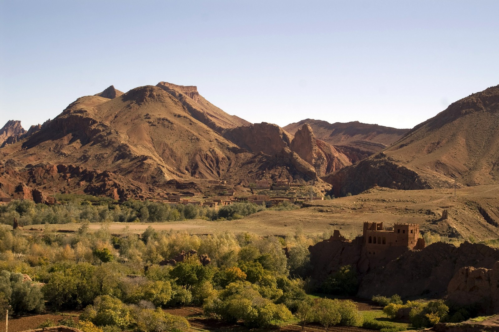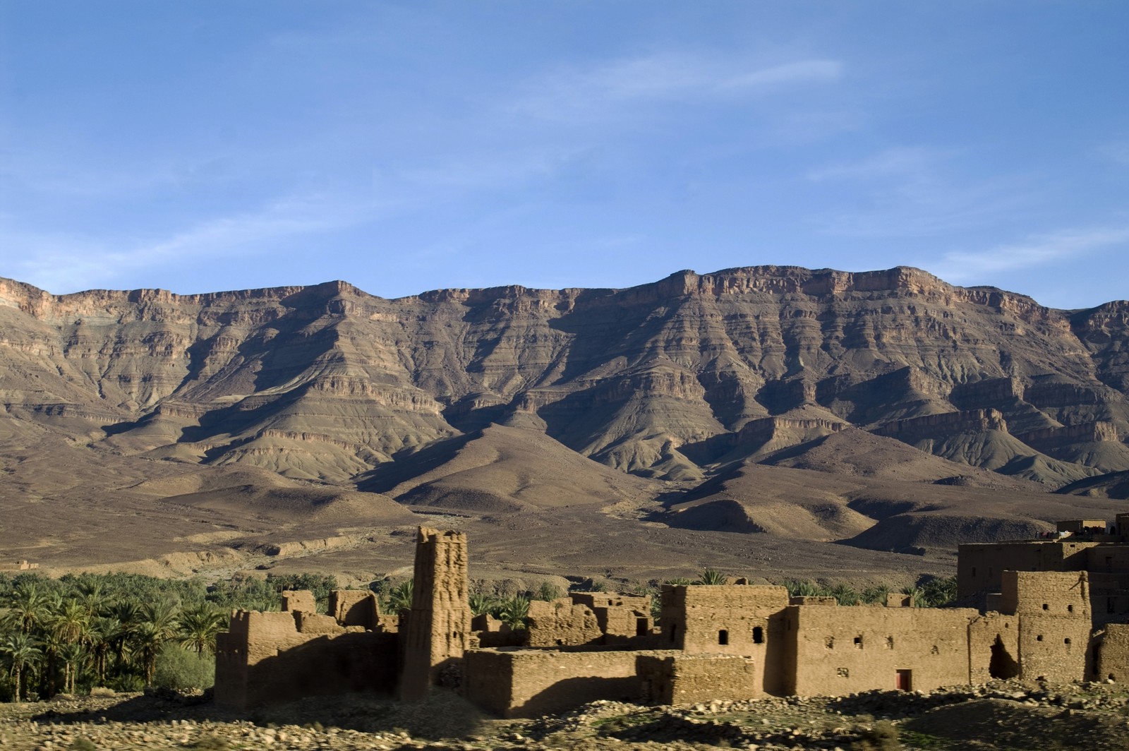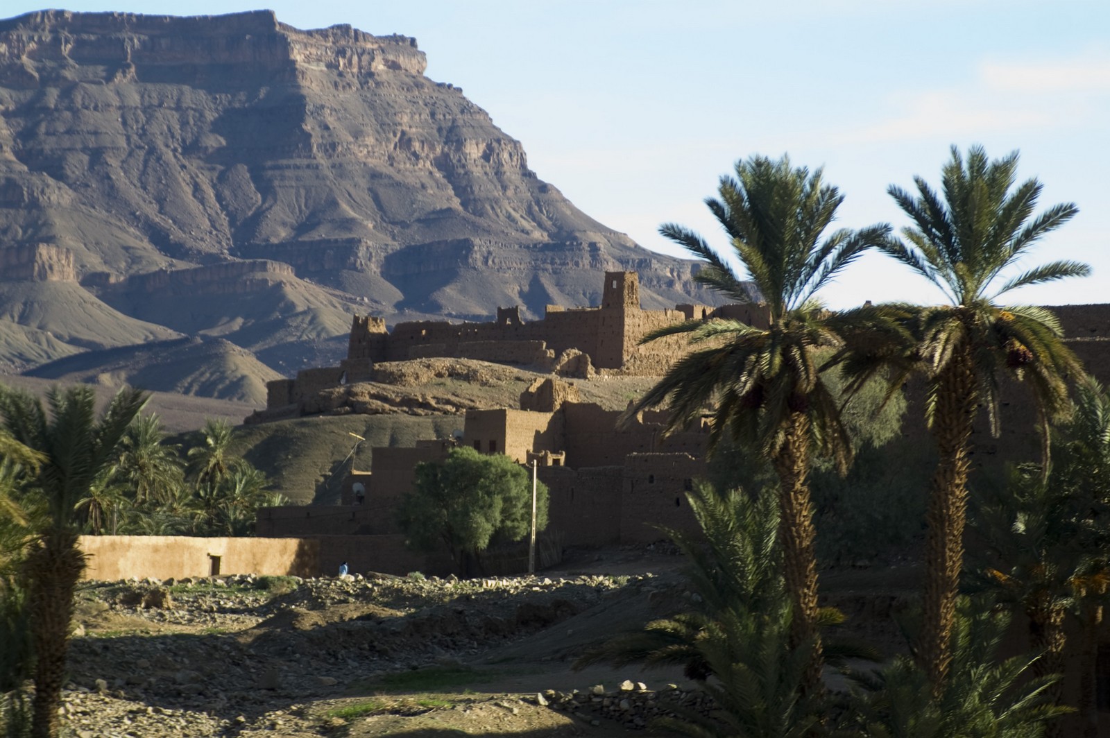 6ème jour - ERFOUD/TINEGHIR/OUARZAZATE : Nous avons pris la route direction la palmeraie du Jorf, au pied du djebel Erfoud. Traversée des villages : Ksar de Touroug, Ksar de Tinjdad avant d'arriver à Tineghir. Découverte de Skoura, avec le Kasbah d'Amerhidil, plateau désertique avec d'un côté le Haut Atlas et le Djebel Saghro. Visite à Ouarzazate de la Kasbah de Taourirt demeure de l'ancien pacha Glaoui. Dîner et logement à l'hôtel Kenzi Azghor.