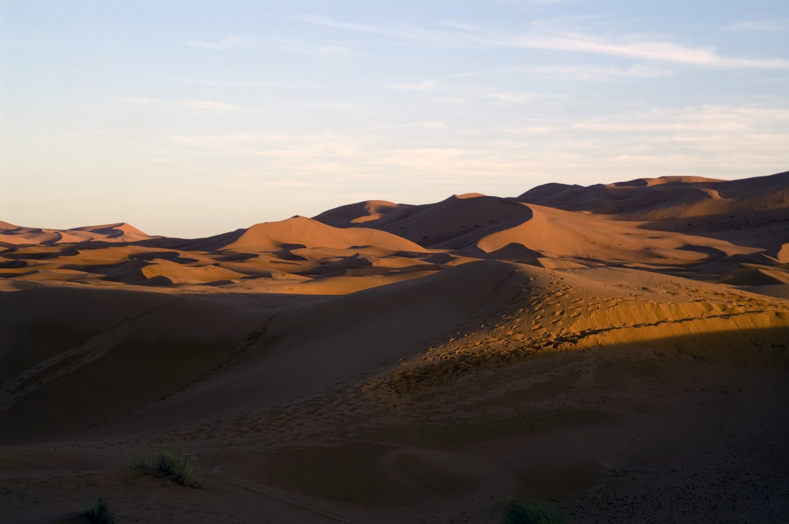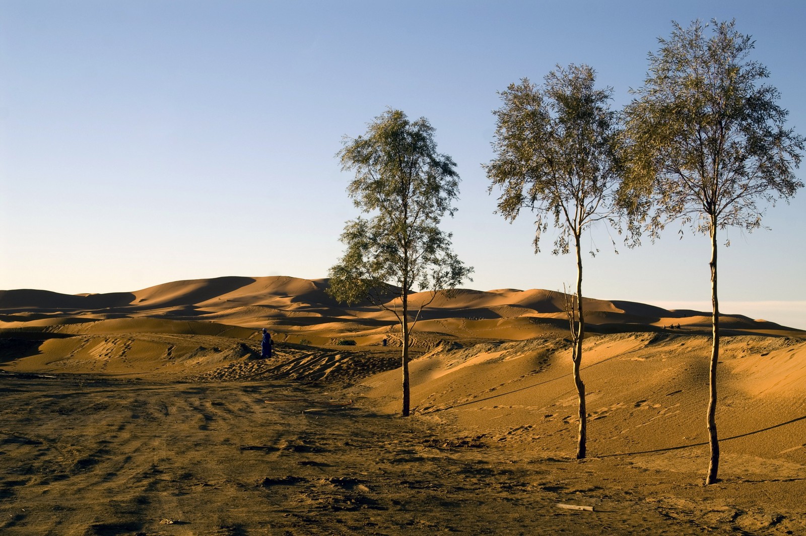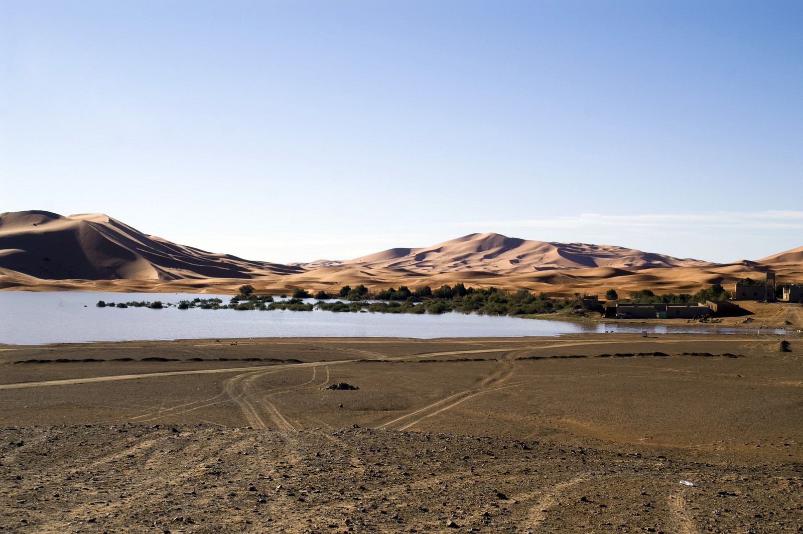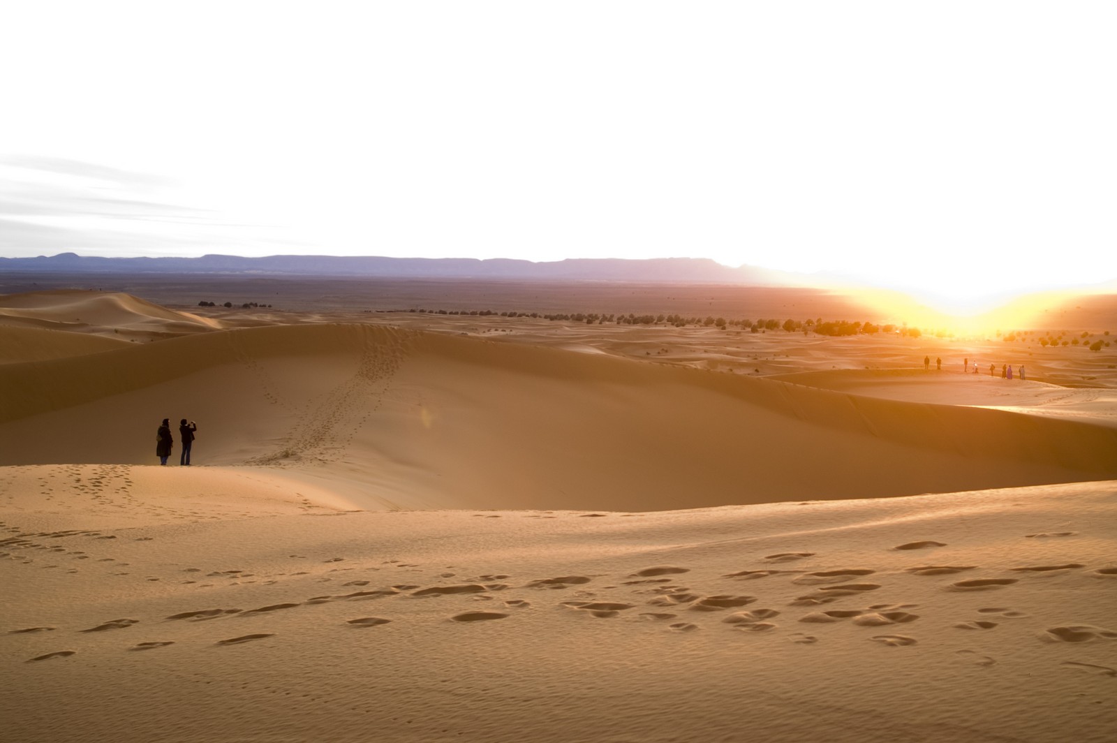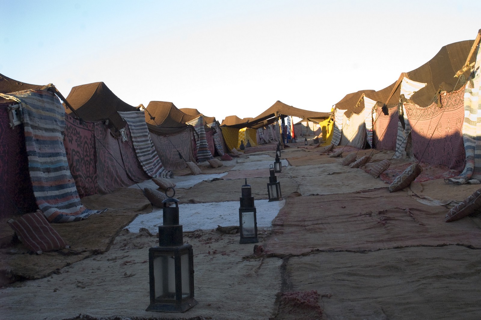 5ème jour - TINEGHIR/ERFOUD/MERZOUGA : Départ pour Erfoud via Tinejdad, Goulmima, Errachidia et la magnifique vallée du Ziz, Rissani , petit village réputé pour son marché aux dattes et construit sur les ruines de Sijilmassa berceau de la dynastie régnante. Ensuite nous avons traversé le reg menant aux dunes de l'erg Chabbi pour le coucher de soleil. Nous nous sommes rendus sur les dunes à dos de dromadaire. Dîner et logement sous tentes nomades au pied des dunes.