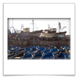 11ème jour - ESSAOUIRA : Visite d'une fabrique d'huile d'argan. Journée à Essouira (prononcer "Swira") ; magnifique petite ville fortifiée sur la côte de l'océan atlantique constituée de maisons blanches aux toits plats et aux huisseries bleues. Après une visite des remparts, de la médina et du port, nous vous conseillons de déjeuner dans les "gargottes" près de la place qui vous prépareront au grill des poissons et des crustacés fraîchement pêchés du matin, et plus particulièrement les sardines.
