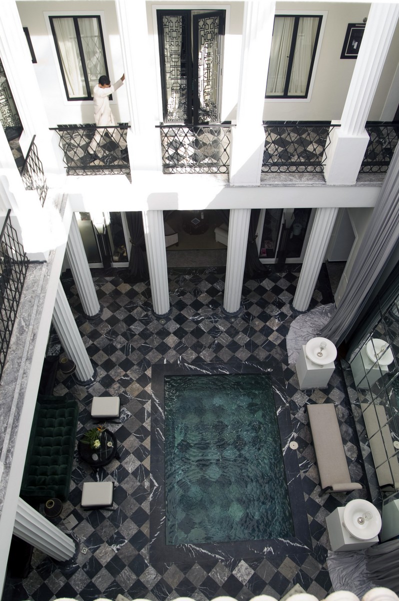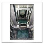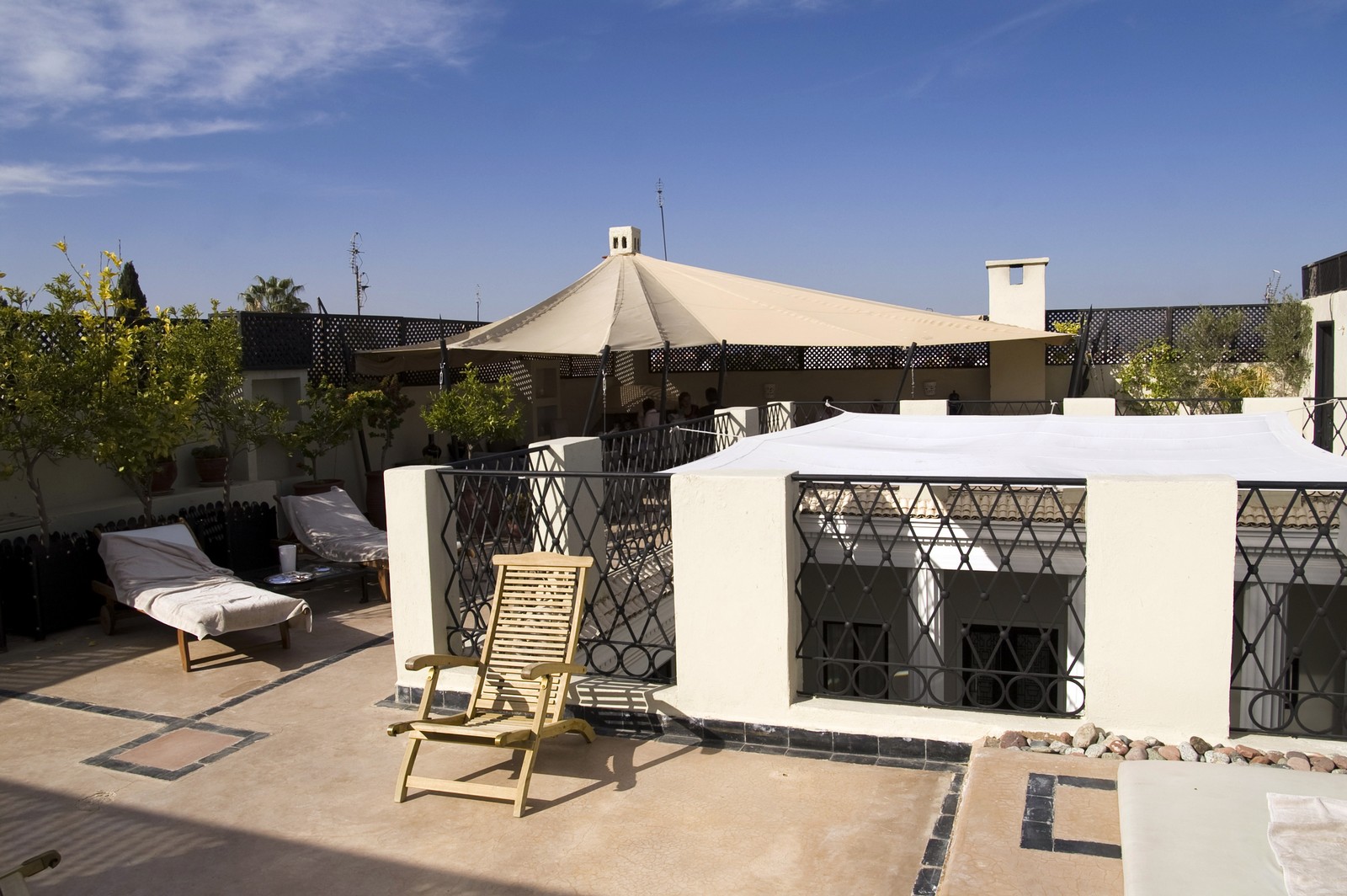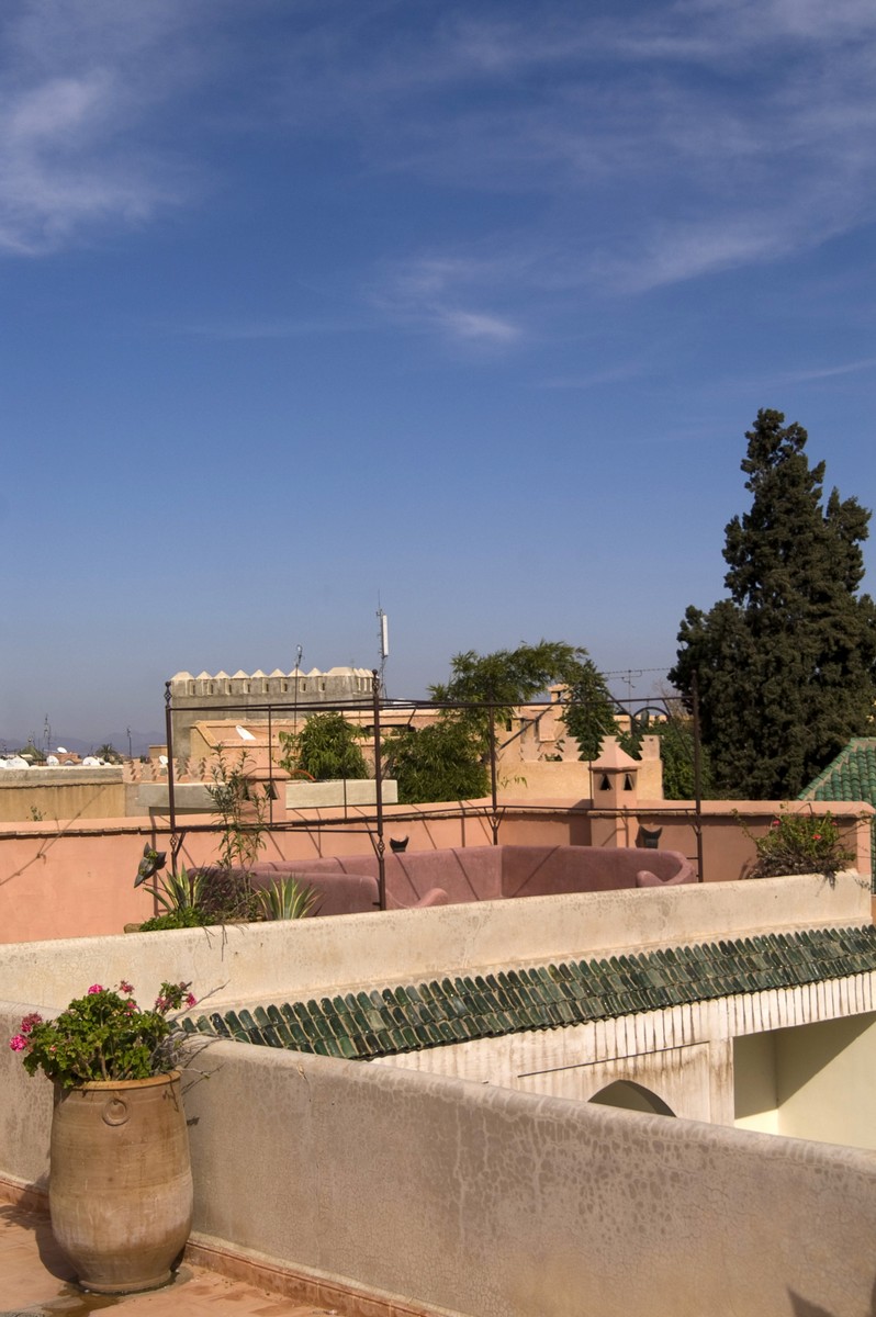 14ème jour - MARRAKECH : Hammam et déjeuner au Lotus riad Perle. C'était la première fois que nous allions dans un Hammam. Se faire laver au gant de crin et au savon noir est une espérience inhabituelle pour des occidentaux. Le riad Perle est un riad à une décoration trés contemporaine.