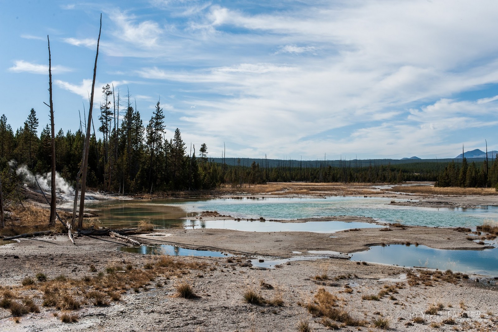 Jour 6: Jackson - Grand Teton - Yellowstone (420 km/5 h 00) : Parc national de Grand Teton, arrêts panoramiques au Jackson et Jenny Lakes. Pparc national du Yellowstone, connu par la beauté de ses paysages, ses phénomènes volcaniques et sa réserve d'animaux sauvages, concentration de geysers, sources chaudes, chutes d'eau et fumerolles. Visite du sud-ouest du parc avec le West Thumb, l’Old Faithful Geyser, Geyser Basins. Yellowstone.