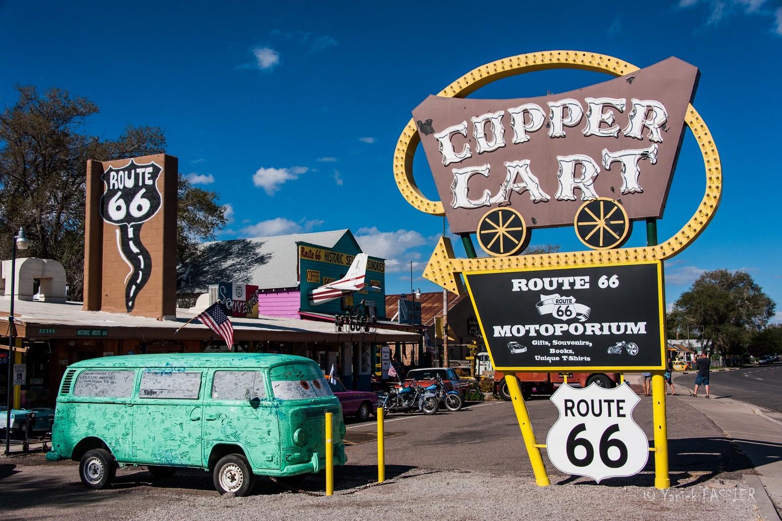 Jour 14 : Flagstaff - Route 66 - Las Vegas (410 km/5h) : Route vers Las Vegas en passant par un arrêt à Seligman sur la Route 66 où vous aurez l’impression que tout s’est arrêté à l’époque d’Elvis et de James Dean. Continuation au milieu du désert vers la ville-lumière la plus démente des Etats-Unis, Las Vegas capitale du jeu et de l’extravagance. Déjeuner libre. Après-midi libre, dîner et nuit à Las Vegas. Las Vegas mérite de se visiter le soir : spectacle des fontaines du Bellagio, bateau de pirates du Treasure Island, éruptions volcaniques au Mirage. Déambulez sur le « Strip » l’avenue principale et découvrez la pyramide Kheops, la tour Eiffel, la place St Marc au Venitian. Une expérience inouïe de la démesure à l’américaine.... tentez votre chance aux machines à sous ou à la roulette! En OPTION Visite de nuit de Las Vegas.